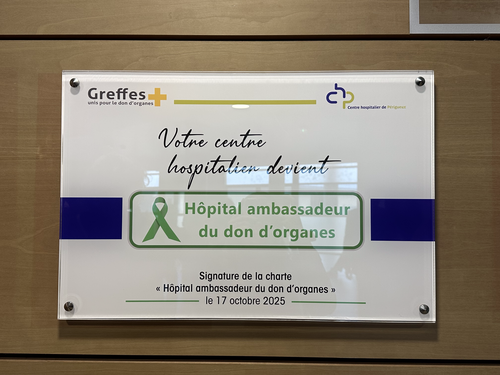 Le vendredi 17 octobre 2025, le Centre Hospitalier de Périgueux a inauguré sa plaque et signé la charte "Hôpital Ambassadeur du Don d'Organes", affirmant ainsi officiellement son engagement en faveur du don d'organes et de tissus.