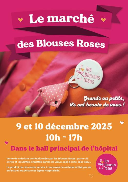 L'association Les Blouses Roses Périgueux/Bergerac, qui intervient avec générosité et créativité auprès des services de pédiatrie, de gériatrie et de l'EHPAD du Centre Hospitalier de Périgueux, vous donne rendez-vous dans le hall du CHP le mardi 9 et mercredi 10 décembre, de 10h à 17h.