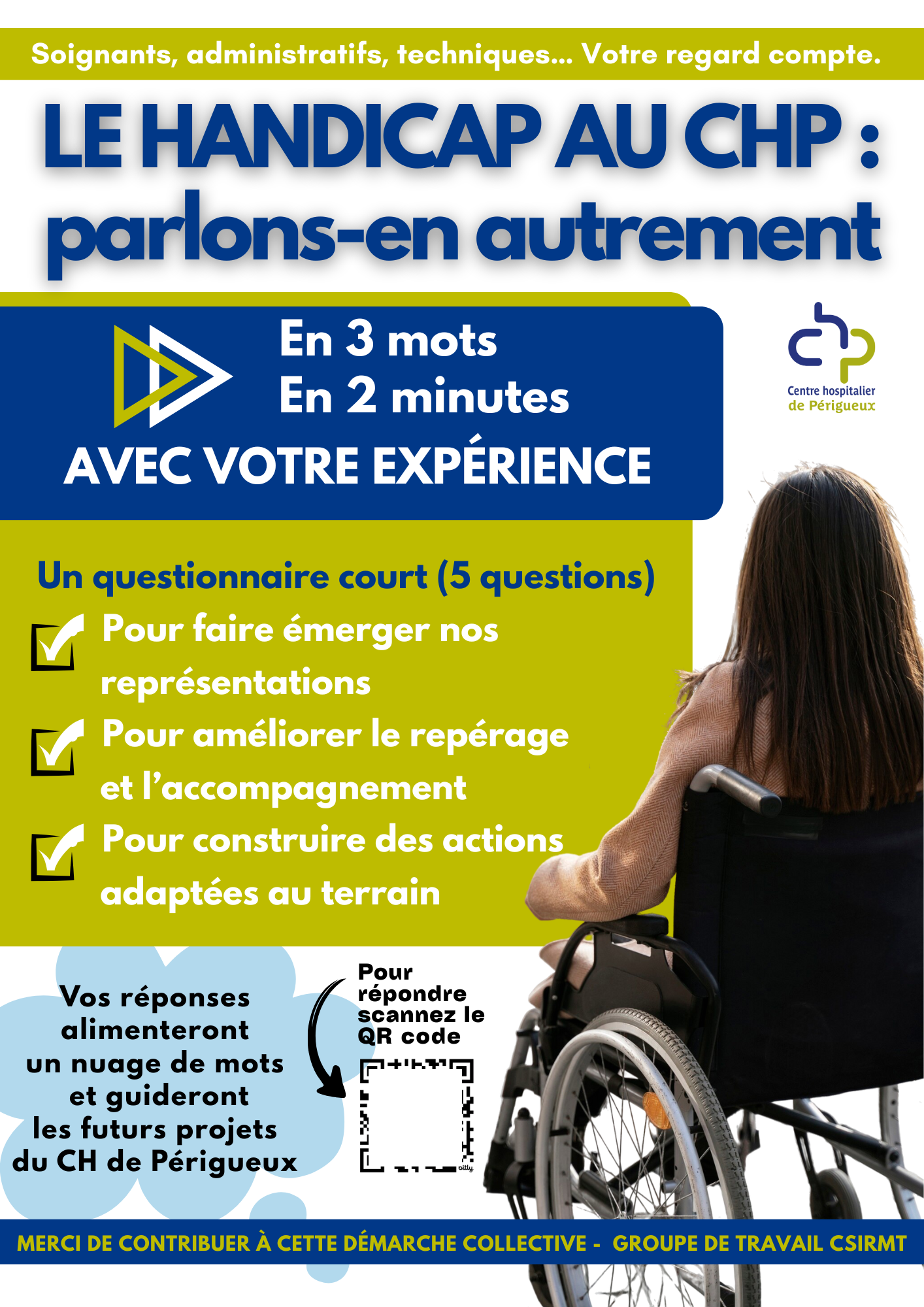 L’accueil et l’accompagnement du handicap sous toutes ses formes s’inscrivent pleinement dans les valeurs et les missions de service public portées par les professionnels hospitaliers.