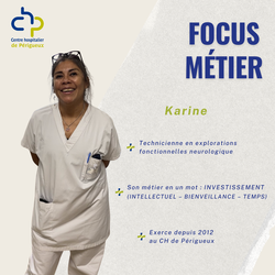 À la base infirmière en réanimation à Paris, je travaillais en coopération avec l'équipe d'explorations fonctionnelles neurologiques pour les EEG (étude de la fonction cérébrale spontanée). Arrivée sur Périgueux en tant qu'infirmière en neurologie, j'ai gardé mon intérêt pour l'EEG et me suis proposée pour une prise de poste en 2013 au départ d'une des techniciennes.